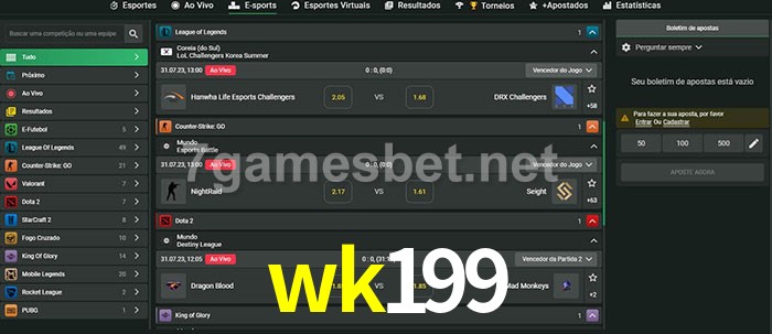 A aposta wk199 oferece aos jogadores a experiência mais conveniente de apostas em eSports!